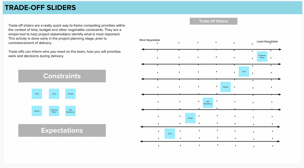 What is it? Trade-off sliders help to visually prioritise project or product dimensions.