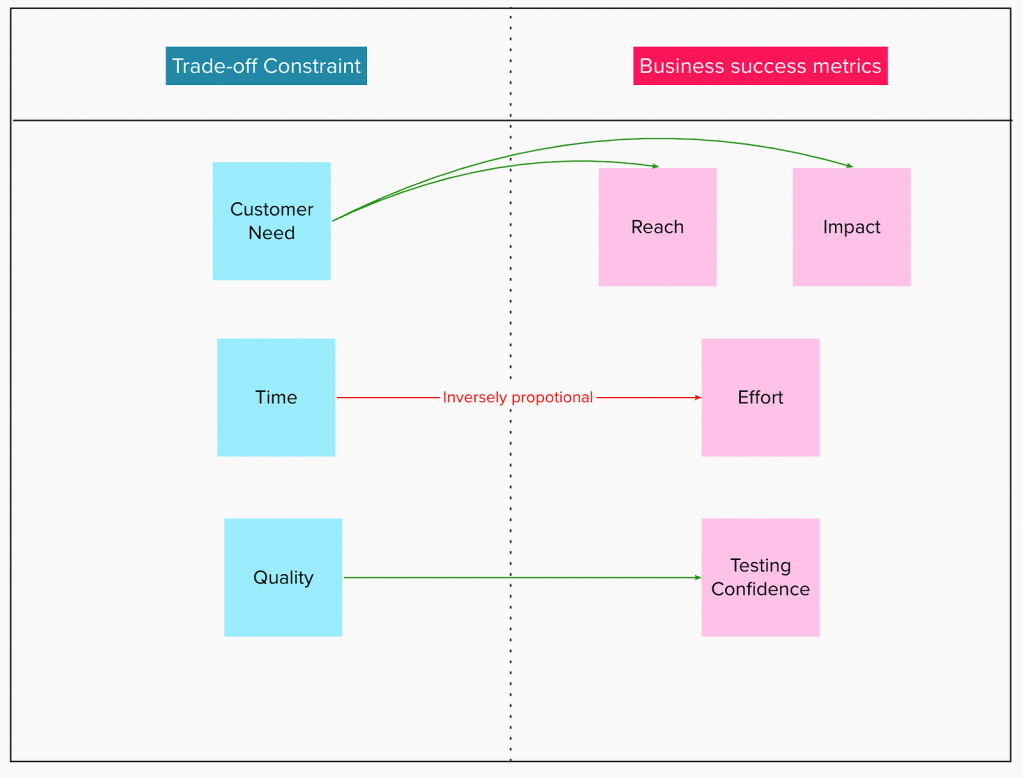 Time — Time is a non-negotiable because the stakeholders want to deliver to the customers as quickly as possible. A business metric that we can use here is Effort because if Effort is high then Time to market would be less and vice-versa. Thus, Effort has an inverse relation with Time and should be considered as a ‘Negative contributor’.